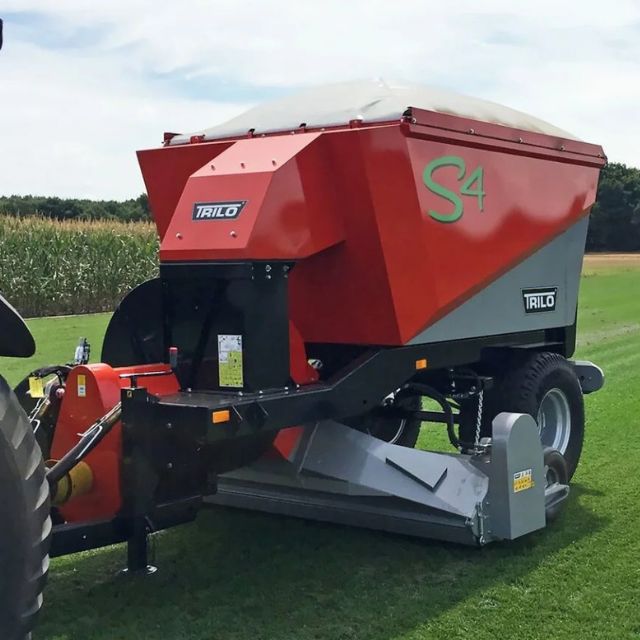 When collecting grass clippings, they are blown with optimal spread into the load bed (4m3), ensuring the best possible fill. The impeller is driven by a PTO drive shaft attached to the tractor and requires an output of 45 – 70 hp (33 – 51 kW). Medium-sized vacuum trailers are fitted with wide radial tyres with low ground pressure. The TRILO S4 now has type approval for transport on public roads for the whole of Europe.